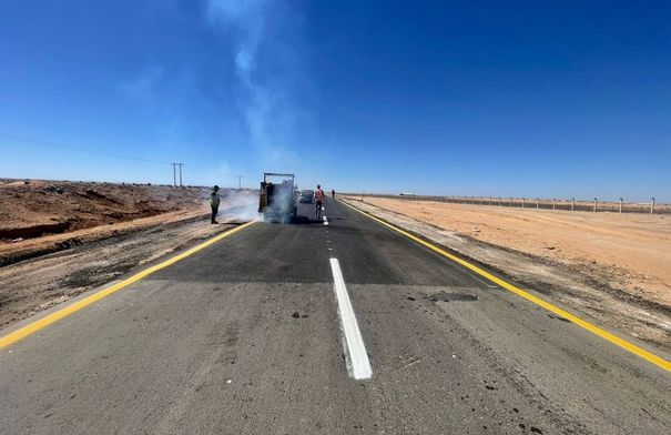 وقالت الوزارة في بيان اليوم الأحد، إن الأعمال شملت صيانة الأجزاء المتضررة من الطريق، من خلال الكشط والتعبيد باستخدام الخلطة الإسفلتية الساخنة، إضافة إلى تنفيذ أعمال التخطيط بالدهان الحراري، لمسافة 3 كيلومترات تبدأ من القاعدة الجوية في الجفر باتجاه منطقة الحسينية.