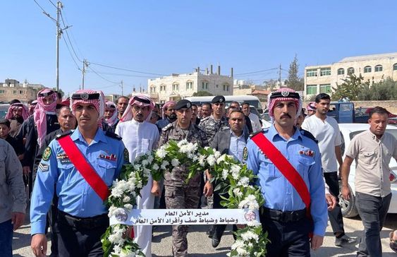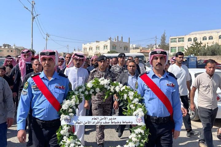 وشارك بتشييع الجثمان نائب مدير شرطـة الباديـة الوسطـى العقيـد خالد العجارمـة والشرطـة المجتمعيـة، وعدد من ضباط وضباط صف وأفراد مديريـة الأمن العام من مختلف التشكيلات.