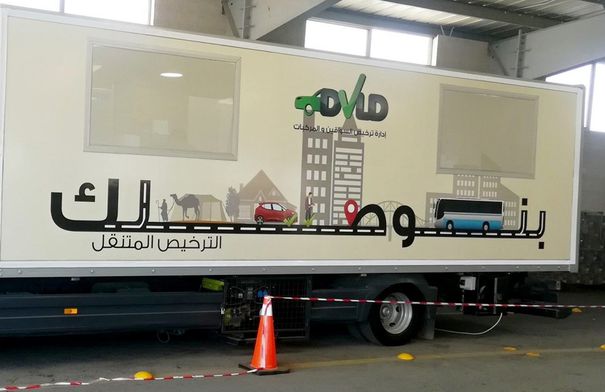 وستقدم عربة الترخيص المتنقلة جميع خدماتها للسائقين في ساحة مبيت الشاحنات خلف قسم دوريات الأزرق، من الثامنة صباحا وحتى الثانية ظهرا.