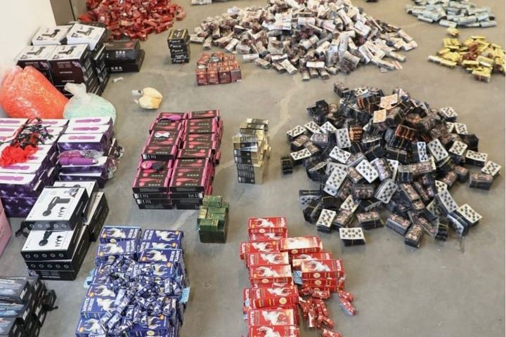 واشتملت المضبوطات على 150 الف حبة من المنشطات الجنسية و918 حبة من الألعاب النارية و 70 صاعقًا من أنواع مختلفة وكبسولات طبية فارغة وأدوية منتهية الصلاحية وبضائع ممنوعة متنوعة.