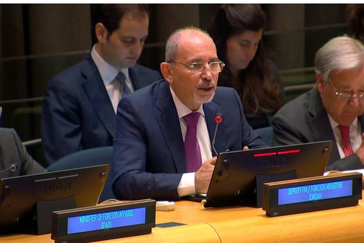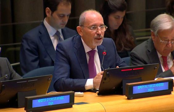 وأضاف الصفدي في تصريحات صحافية على هامش أعمال الأسبوع رفيع المستوى للدورة الـ ٨٠ للجمعية العامة للأمم المتحدة في نيويورك يوم أمس، "موقف الحكومة الإسرائيلية المتطرّف الذي يُعلن على لسان رئيس وزراء هذه الحكومة المتطرفة أنه لن يسمح بإقامة الدولة الفلسطينية، عندما يُعلن رئيس الوزراء الإسرائيلي أنه لن يسمح بإقامة الدولة الفلسطينية فهو يقول إنه لن يسمح بتحقيق السلام العادل والشامل؛ لأن لا بديل عن حل الدولتين الذي يجسّد الدولة الفلسطينية المستقلة على التراب الوطني الفلسطيني سبيلاً لتحقيق السلام".