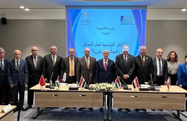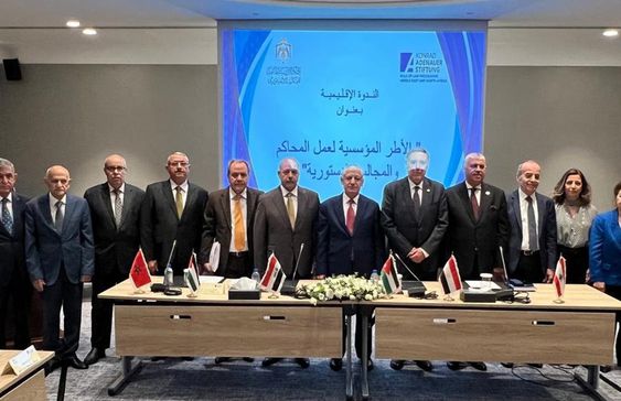 وعلى صعيد الإطار المؤسسي العام، فقد تمت التوصية بالعمل على تعزيز مكانة المحاكم والمجالس الدستورية بين كافة السلطات والهيئات على الصعيد المحلي باعتبارها المؤسسات المختصة بحماية الحقوق والحريات واعتبارها ضامن وحافظ للمبادئ الدستورية، والعمل على تبادل التجارب والممارسات الفضلى على الصعيد الإقليمي من خلال اتحاد المحاكم والمجالس الدستورية العربية والعمل على عقد لقاءات مماثلة تعالج اخر المستجدات على صعيد القضاء الدستوري.