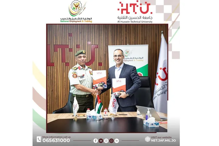 ووقّع المذكرة عن الشركة الوطنية للتشغيل والتدريب مديرها العام العميد الركن أشرف محمد عليمات، وعن جامعة الحسين التقنية الأستاذ الدكتور إسماعيل الحنطي رئيس الجامعة، وذلك في مقر الجامعة بمجمّع الملك الحسين للأعمال .