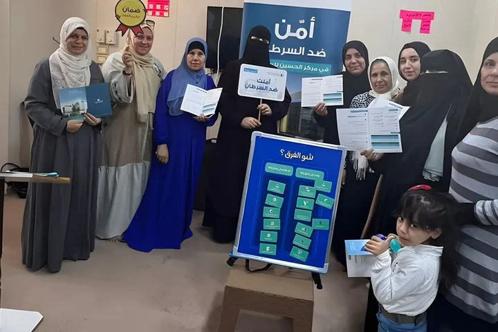 وخلال اللقاء الذي عقد اليوم الاثنين بمسجد زيد بن ثابت بإربد أشارت ضابط ارتباط مؤسسة الحسين للسرطان غادة بكار الى دور المؤسسة في نشر الوعي بخطورة مرض السرطان في المجتمعات المحلية، واستعرضت تفاصيل برنامج تأمين "رعاية" وآلية الاشتراك فيه، إضافة الى مميزات البرنامج والخدمات التي يقدمها، والاتفاقية الموقعة بين الحكومة ومؤسسة الحسين للسرطان ودور الاتفاقية في توسيع نطاق الاستفادة من برنامج رعاية.