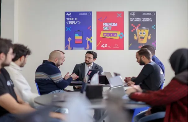 والتقى سمو ولي العهد، خلال زيارته للمركز في محافظة إربد، بطلاب ملتحقين ببرنامج 42في عمان وإربد والذين شاركوا في تحدي "شركة واحدة – مشكلة واحدة – يوم واحد" للابتكار في "42عمان"، والذي يهدف إلى تمكين الطلبة للتعامل مع مشكلات واقعية تواجه القطاع الخاص لإيجاد حلول تطبيقية لها.