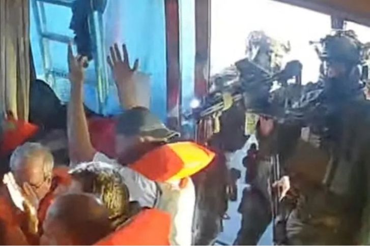 ومن بين الركاب المشاركين في هذا التحرك والذين اعتُرضت قواربهم، الناشطة السويدية غريتا تونبرغ التي ظهرت في فيديو نشرته السلطات الإسرائيلية وهي تجمع أغراضاً شخصية محاطة برجال مسلَّحين.