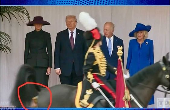 تداول نشطاء على مواقع التواصل الاجتماعي خلال الأيام القليلة الماضية، مقطع فيديو ما فعله أحد الخيول المشاركة بمراسم الاستقبال الرسمية التي أقامها الملك تشارلز الثالث، للرئيس الأمريكي، دونالد ترامب.