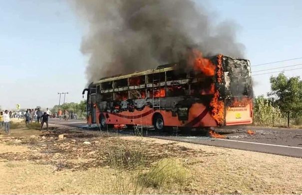 وحسب الشرطة الهندية، اندلعت النيران في الحافلة بعد الاصطدام قرب قرية تشينا تيكور في منطقة كورنول بينما كانت تقل 42 راكبا في طريقها من حيدر أباد إلى بنغالور.