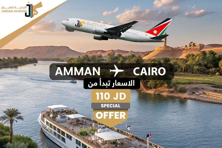 طرق الحجز والتواصل: المكتب الرئيسي: 0096265501760 ،واتساب: 0777007772 ،الموقع الإلكتروني: jordanaviation.jo.