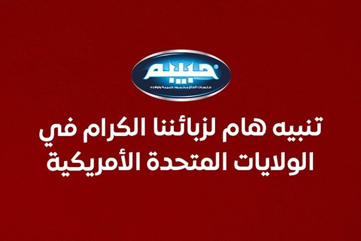 •شركة الحاج محمود حبيبه وأولاده لا تتحمّل أي مسؤولية عن جودة أو سلامة أو مكونات أي منتج يُعرض أو يُباع داخل الولايات المتحدة تحت اسم “حبيبه” أو أي تسمية مشابهة.
