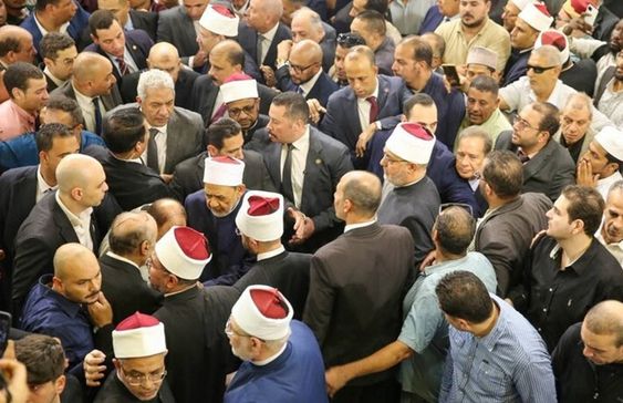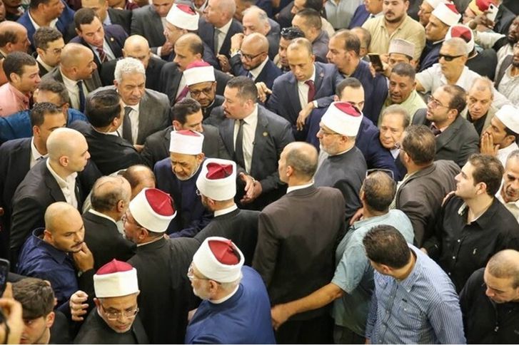 واحتشد المئات من طلاب الأزهر حول شيخ الأزهر عقب صلاة الجنازة، حيث وثَّقت مقاطع فيديو حالة الزحام الشديد حول الشيخ "الطيب" وتدافع الطلاب والمصلين في محاولة لمصافحة شيخ الأزهر.