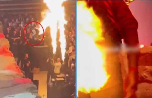 ووفق منظّمي الحفل، فقد الشاب توازنه فوق فوهة جهاز اللهب، ما أدى لاشتعال ملابسه، لكن فرق الأمن والإسعاف تدخلت فورًا، وأكدت أن حالته مستقرة ولم يصب بإصابات خطيرة. وشدد المنظّمون على ضرورة التزام الجمهور بإجراءات السلامة حول معدات المؤثرات النارية.