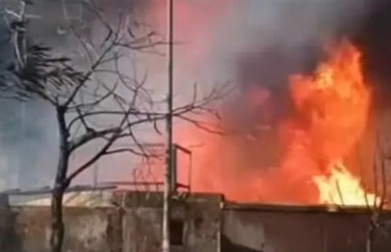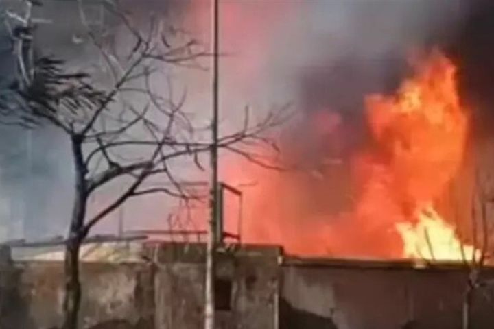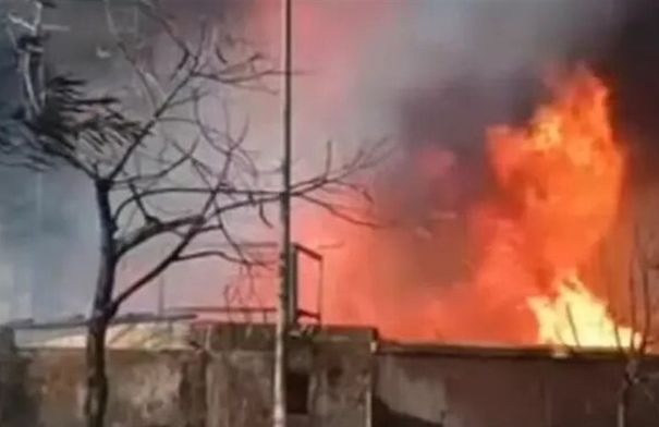 وتسبب الحريق في تصاعد ألسنة لهب ضخمة وأعمدة دخان سوداء غطت سماء المنطقة.