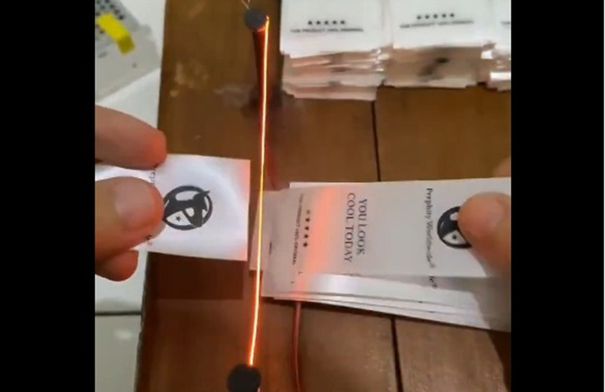 عامل يقطع الملصقات بالليزر.. وخطأ واحد قد يكلّفه الكثير