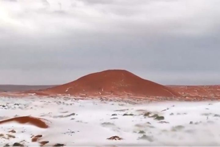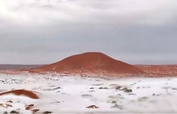 مشهد يخطف الأنظار..مدينة حائل السعودية تكتسي البياض بعد موجة برد كثيفة