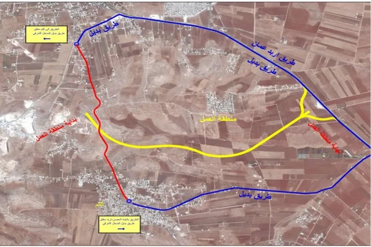 وأكدت أن حركة السير ستحول إلى الطريق الرئيسي (إربد – عمان) من المدخل الشرقي، وفقًا للمخطط الكروكي واللوحات الإرشادية الموضوعة لتوجيه المواطنين، وذلك حتى الانتهاء من الأعمال. كما سيتم إنشاء طرق خدمية ضمن نطاق المشروع لخدمة السكان المحليين.