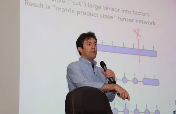 أما الجلسة الثانية التي أدارها الدكتور عبد الله الشريف والدكتور رياض عبابنة، فتناولت موضوعي الذكاء الاصطناعي في الحوسبة الكمومية والذكاء الاصطناعي في الفيزياء الحيوية الحاسوبية، حيث قدم البروفيسور إيدوين ستودينماير من معهد حوسبة الفيزياء الكمومية في الولايات المتحدة ورقة بعنوان "شبكات التينسور، تعلم الآلة والدوال"، فيما عرضت البروفيسورة إيدينا روستا من كلية لندن الجامعية – بريطانيا، ورقة بعنوان "محاكاة أخذ العينات المحسنة للأنظمة الجزيئية الحيوية".