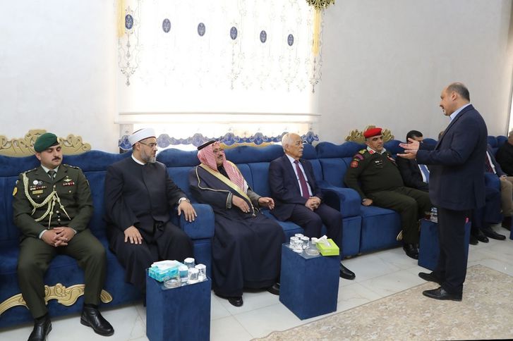 ونقل العيسوي، خلال زيارته بيت عزاء المرحومة في منطقة الموقر تعازي ومواساة جلالة الملك وسمو ولي العهد، إلى ذوي الفقيدة وعموم عشيرة الخريشا وعموم عشائر قبيلة بني صخر، سائلا المولى عز وجل أن يتغمدها بواسع رحمته.