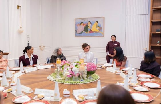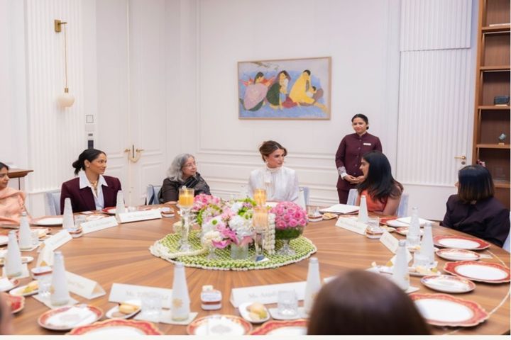 وكان في استقبال جلالتها المدير التنفيذي لشركة ريلاينس للتجزئة ايشا أمباني قبل أن تنضم إلى بقية السيدات في جلسة حوارية تمحور النقاش فيها حول تنوع التجارب والخبرات النسائية ودورها في مختلف قطاعات أعمالهن.