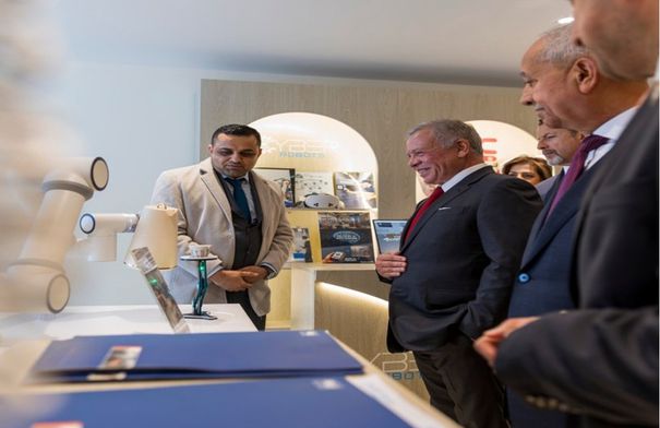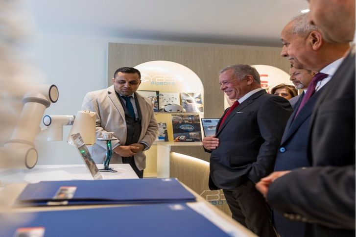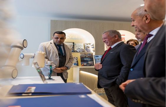 وزار جلالة الملك مركز الابتكار الأردني للثورة الصناعية الرابعة (InJo4.0) في مقر غرفة الصناعة، واستمع إلى شرح من المهندسة دانا قدع عن المركز الذي يهدف إلى تسريع تبني الحلول الرقمية والتكنولوجية في القطاع الصناعي لرفع الإنتاجية وتعزيز التنافسية.