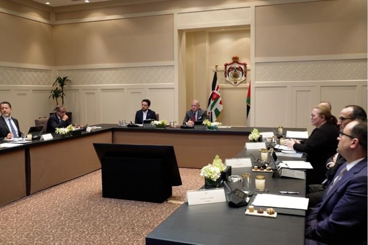 وحضر الاجتماع مدير مكتب جلالة الملك، علاء البطاينة، ووزيرة التخطيط والتعاون الدولي زينة طوقان، ووزير الاستثمار طارق أبو غزالة.
