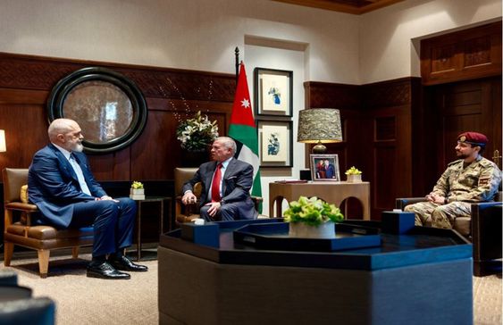 وحضر اللقاء رئيس الوزراء الدكتور جعفر حسان، ونائب رئيس الوزراء ووزير الخارجية وشؤون المغتربين أيمن الصفدي، ومدير مكتب جلالة الملك، المهندس علاء البطاينة، وسفير ألبانيا لدى الأردن سامي شيبا، والوفد المرافق للضيف.