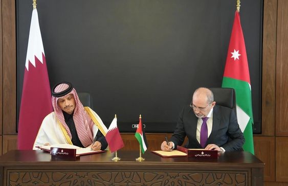 وقّع نائب رئيس الوزراء ووزير الخارجية وشؤون المغتربين الأردني أيمن الصفدي ورئيس مجلس الوزراء ووزير الخارجية في دولة قطر الشيخ محمد بن عبد الرحمن آل ثاني على:
