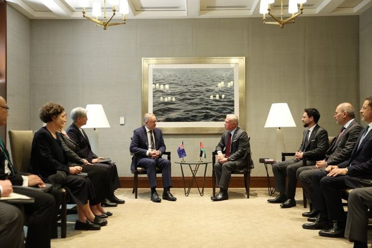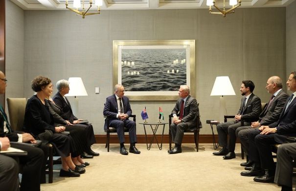 الوكيل الإخباري-  ثمن جلالة الملك عبدالله الثاني، خلال لقائه رئيس وزراء أستراليا آنتوني ألبانيزي في نيويورك، اعتراف أستراليا بالدولة الفلسطينية ، وذلك بحضور سمو الأمير الحسين بن عبدالله الثاني، ولي العهد .اضافة اعلان