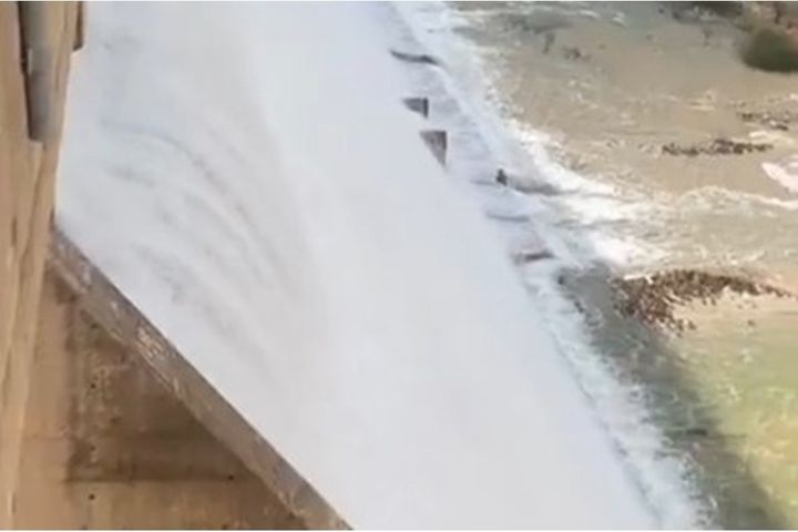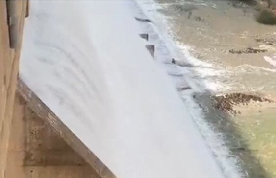 وأظهر الفيديو تدفق المياه من السد بكميات كبيرة، في مشهد يعكس ارتفاع منسوب التخزين نتيجة الهطولات المطرية، ضمن الموسم المطري الحالي.