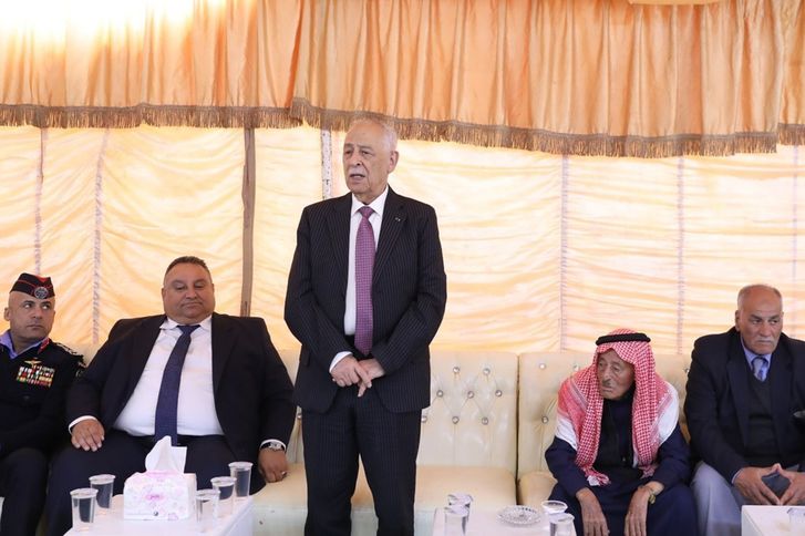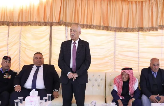 ففي منطقة حوشا بمحافظة المفرق، نقل رئيس الديوان الملكي الهاشمي يوسف حسن العيسوي، خلال زيارته بيت عزاء المرحوم راكان كريم القاضي، والد عقيد جمارك معن القاضي، تعازي ومواساة جلالة الملك وسمو ولي العهد إلى ذوي الفقيد وعموم عشيرة القاضي، سائلاً المولى عز وجل أن يتغمده بواسع رحمته.