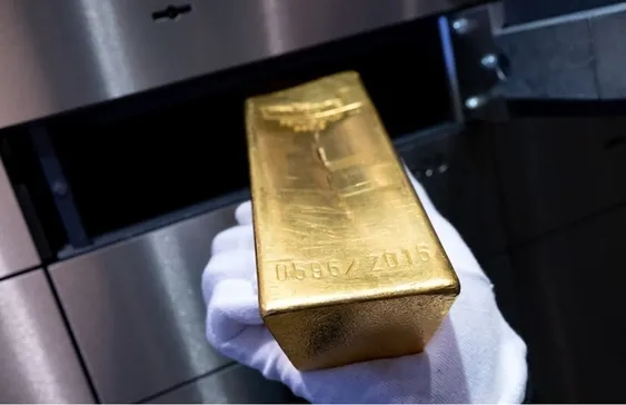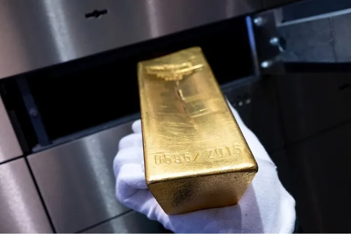 رجل يضع سبيكة من الذهب (12.5 كغم) في خزنة شركة "برو أوروم" المتخصصة في تجارة المعادن الثمينة في ميونخ بألمانيا.