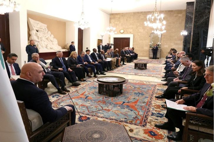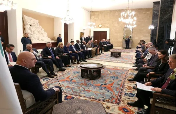 الرئيس اللبناني جوزاف عون يتحدث مع وفد مجلس الأمن في القصر الرئاسي اللبناني