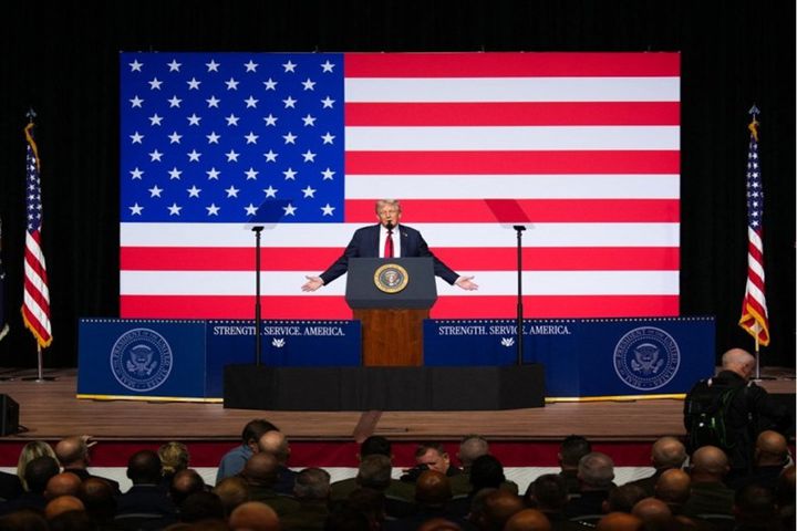 وأعلن ترامب خلال اجتماع ضم جنرالات وأدميرالات أميركيين في قاعدة كوانتيكو بولاية فرجينيا، أن الولايات المتحدة تشهد "حربا من الداخل" في إشارة إلى المهاجرين.