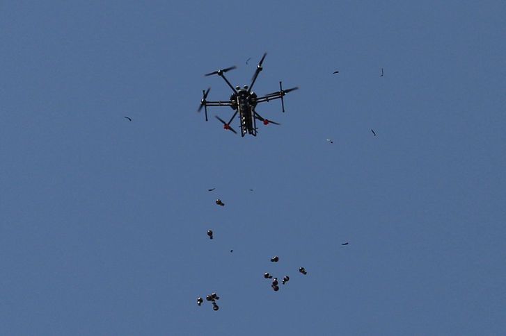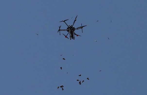 وأصيب عدد من الفلسطينيين جراء إلقاء مسيّرات إسرائيلية من طراز "كوادكوبتر" قنابل على خيام النازحين في محيط سوق العملة بمدينة غزة.