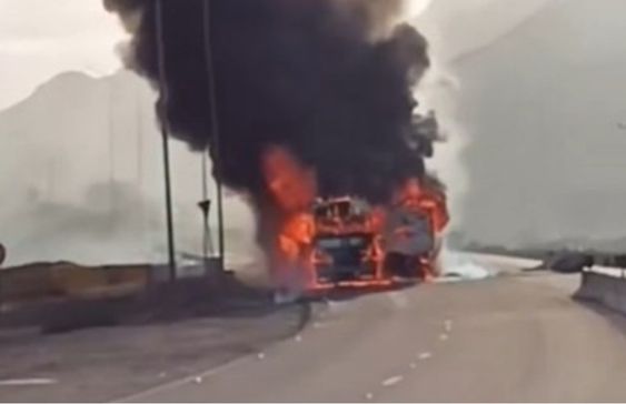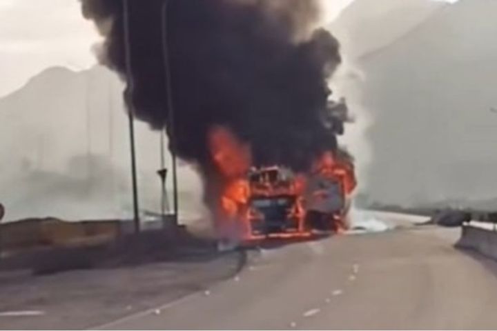 وأظهرت المقاطع التي وصلت لـ"الوكيل الإخباري" التهام النيران للمركبتين ، في مشهد مروع ، حيث جرى الإبقاء على الطريق مغلقًا كإجراء احترازي حفاظًا على السلامة العامة.
