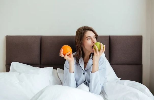 إذا كنتِ جائعة قبل النوم، فالفاكهة خيار أفضل من الحلويات أو الوجبات الثقيلة. والفواكه تحتوي على ألياف، وفيتامينات، وماء يساعد على الهضم.