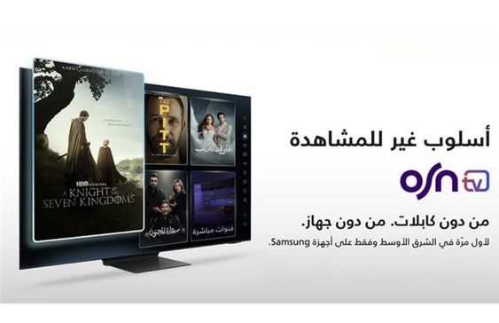 وتتوافر قنوات OSNtv حصريًا على أجهزة تلفاز سامسونج الذكية (طرازات العام 2021 فما بعده) في جميع أسواق الشرق الأوسط وشمال أفريقيا. ويمكن لمستخدمي الأجهزة الحاليين والجدد تفعيل وصولهم المباشر إلى محتوى القنوات من واجهة أجهزتهم، ومشاهدة بثها الحي بشكل فوري.