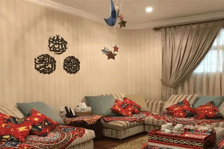 ولإضفاء لمسة روحانية، يمكن الاستعانة بديكورات تحمل الطابع الإسلامي، كأكواب مزينة بالخط العربي، أو صناديق خشبية للتمر، إلى جانب شموع برائحة العود والمسك.