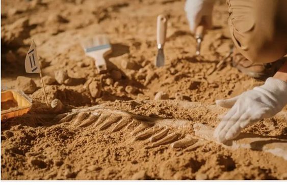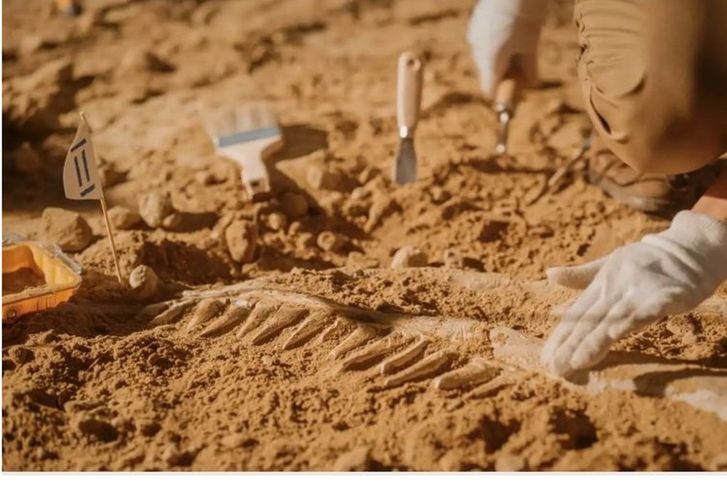 عظمة تمساح محفوظة بين فكيه، ما يشير إلى أنه كان يفترس كائنات أخرى في عصور ما قبل التاريخ.