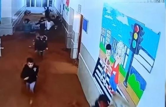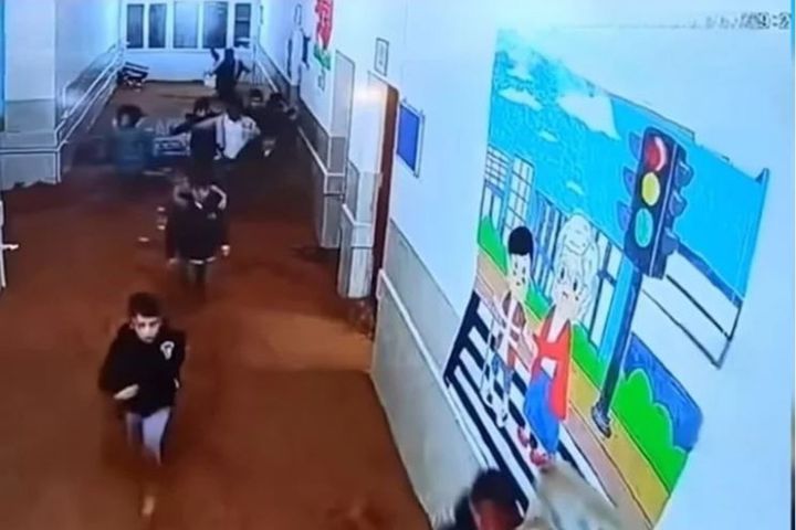 وبحسب الفيديو المتداول، هرع المعلمون إلى إخلاء المدرسة من التلاميذ ومساعدتهم على الخروج بأمان، كما أظهرت كاميرات المراقبة.