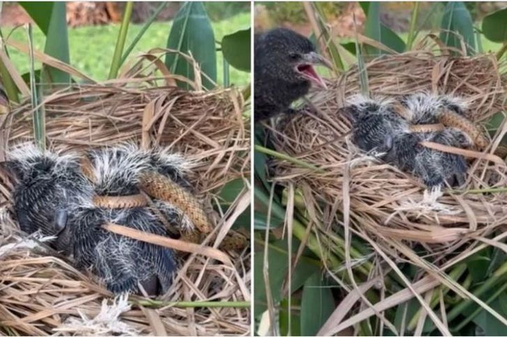 المقطع، الذي حظي بانتشار واسع، أظهر الأفعى وهي تتسلل إلى العش وتبتلع الفراخ واحداً تلو الآخر، بينما كانت الأم تحوم حولهم وتصرخ في محاولة يائسة لإنقاذهم. ورُصدت وهي تمسك برأس الأفعى داخل فمها، محاولة سحبها، لكنها لم تتمكن من إبعادها، لتستسلم في النهاية وتشاهد صغارها يفارقون الحياة.