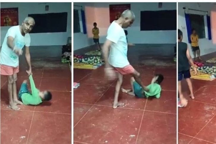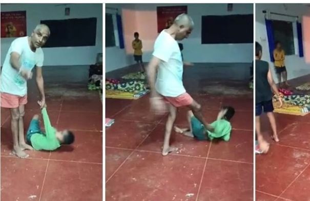 الفيديو أظهر المعلم، فيريش هيريماث، وهو يصرخ في وجه الطالب لعدة دقائق قبل أن يطرحه أرضاً ويوجه له ركلات متكررة، وسط توسلات الطالب بالتوقف، دون أي رحمة.