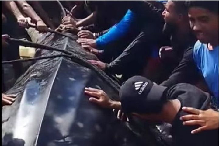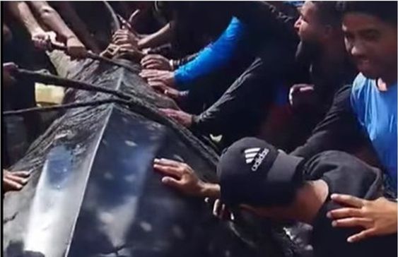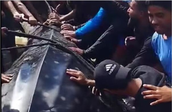 وانتشرت المقاطع المصوّرة بسرعة على منصات التواصل، حيث ظهر المئات من السكان وهم يتجمّعون حول السمكة العملاقة، يلتقطون الصور، ويقومون بتوزيع لحمها في أجواء من الابتهاج والأمل، وكتب أحد النشطاء: "غريبة ولا مش غريبة، راح تتاكل، الشعب مشتاق للحوم."