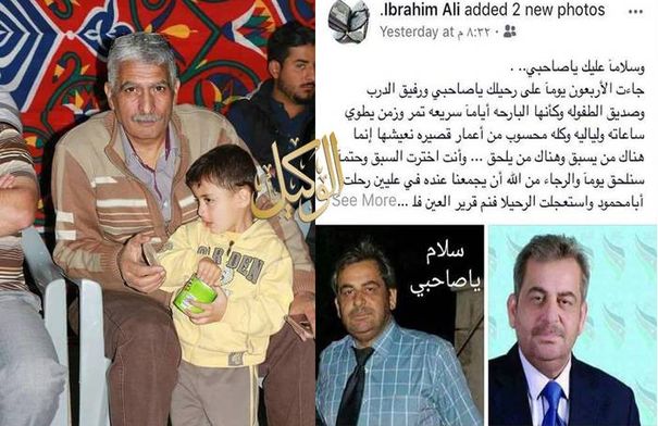 وكان المرحوم ابراهبم قد كتب منشوراً على صفحته الشخصية على الفيسبوك يرثي فيه صديقه عدنان حماشا مساء امس ولحقه متوفياً صباح اليوم .