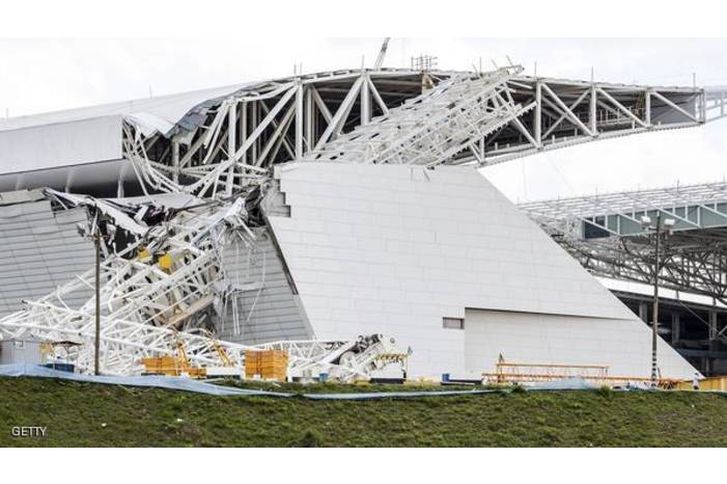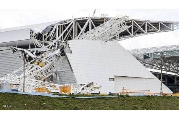 ونشرت مواقع إخبارية صورا لانهيار الهيكل المعدني لملعب 'غيتاكيرا' في ساو باولو، ولعمليات الإنقاذ في المكان.