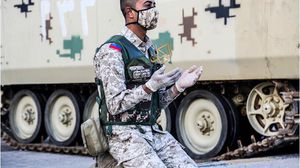 الغريب في الصورة ليس وجود المدرعة لكن الغريب والذي اشعل مواقع التواصل الاجتماعي جنديان يقوم احدهما بالصلاة على جانب المدرعة ويقوم الاخر بقراءة القران .