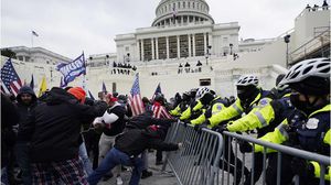 وبدأ المشاغبون في إسقاط الحواجز أمام مبنى الكابيتول وتجاوز ضباط الشرطة. ثم ركض أنصار ترامب على الدرج وطرقوا الأبواب بقوة وحاولوا دخول المبنى عبر النوافذ.