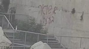 وخُطَّت عبارة مماثلة على جدار الكنيس الكبير في مكان آخر في القدس.
