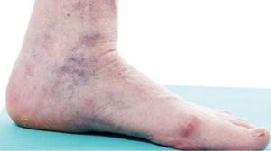 انتفاخ الأوردة وظهورها باللون الأزرق أو البنفسجي.