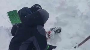 الوكيل الإخباري _ تداول رواد مواقع التواصل الإجتماعي مقطع فيديو يرصد لحظة انقاذ شاب يبلغ من العمر 15 عاماً من انهياراً ثلجياً في قرية تيليتشيكي شمال جمهورية كامتشاتكا الروسية.
